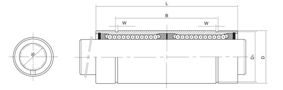 | Belső átmérő | Külső átmérő | Hossz L | B | W | D1 | Excentricitás (max) (μm) |